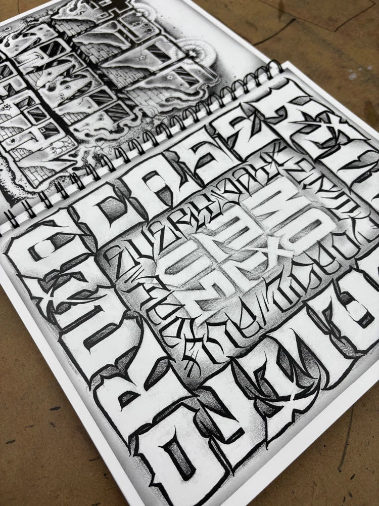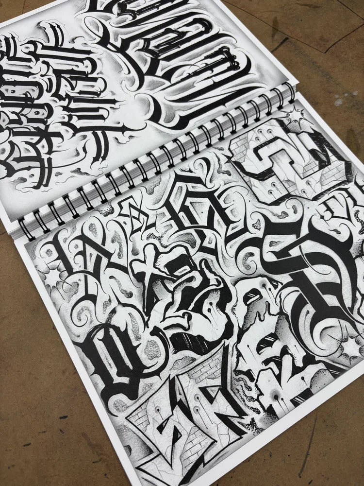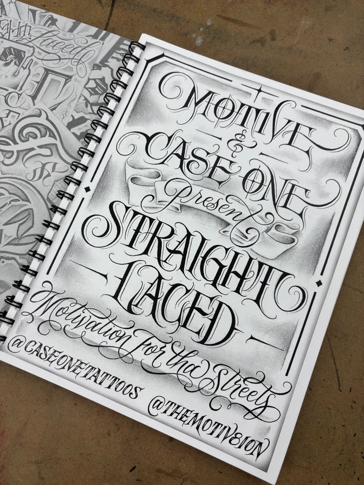 Straight Laced by Motive and Case One is a 90-page showcase of bold and expressive lettering styles—ranging from clean block letters to fluid script and everything in between. Inside, you’ll find a dynamic mix of hand-painted pieces, full alphabet sets, shading techniques, and unique lettering compositions. Whether you’re an artist seeking inspiration or a collector of letterform art, this book is packed with creative fuel and visual impact.